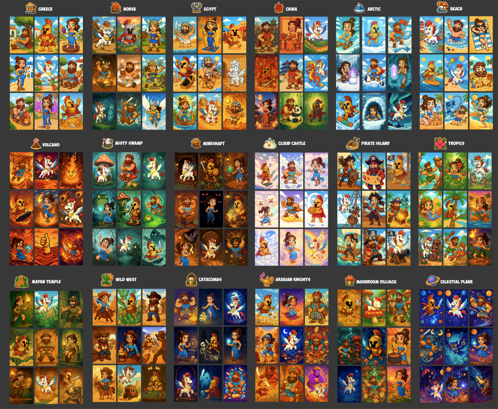 This first set relies heavily on unique story moments in exotic locations for each of our established characters. By putting them into new environments we see exciting ways that they can express themselves!